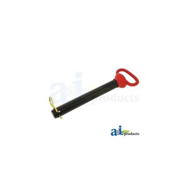 Hitch Pin, Red Handled 1 1/8" x 8 1/2, Diameter: 1.125", Length: 8.500", Notes: 1 pc. forged head w/ red plastic coating & hair pin.