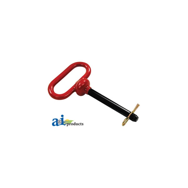 Hitch Pin, Red Handled 3/4" x 6 1/2, Diameter: .750", Length: 6.500", Notes: 1 pc. forged head w/ red plastic coating & hair pin.