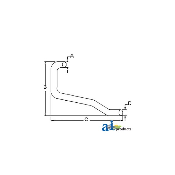 Horizontal Outlet Pipe, Dim A (1): A: 1 1/2" INLET I.D., Dim B (2): B: 17" VERTICAL LENGTH, Dim C (3): C: 32" HORIZONTAL LENGTH, Dim D (4): D: 1 1/2" OUTLET O.D.