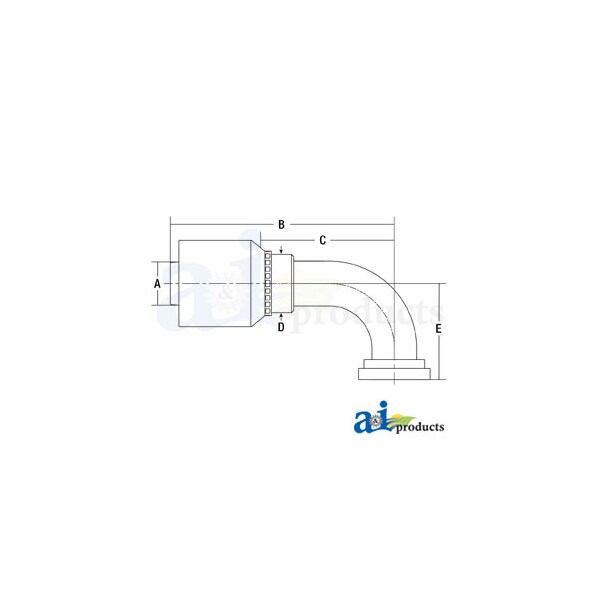 (HW-C61) Code 61 Flange Head - 90� Elbow, Dim A (1): 1.250", Dim B (2): 6.250", Dim C (3): 3.730", Dim D (4): 1-5/8", Dim E (5): 2.680", Hose Inside Diameter: 1-1/4"
