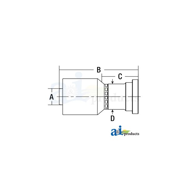 (HW-C61) Code 61 Flange Head - Straight, Dim A (1): 0.750", Dim B (2): 3.480", Dim C (3): 1.610", Dim D (4): 1.120", Hose Inside Diameter: 3/4"