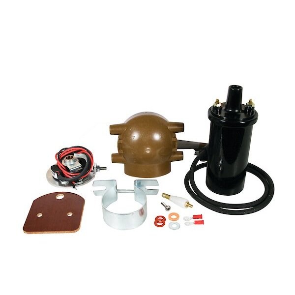 Ignition & Coil Conversion Kit; 6 Volt Positive Ground, Dim A (1): Used On 6 Volt Positive Ground Systems Only., Notes: everything you will need to convert to a standard canister style coil., Notes: This kit not only converts the front mount distributor to solid state ignition, but also contains