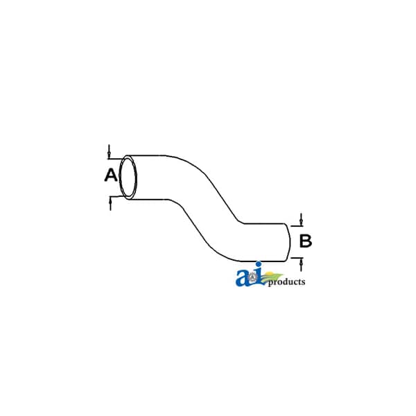 Lower Radiator Hose, Dim A (1): A - 2.375", Dim B (2): B - 2.000", Web Notes: New lower radiator hose with an inside diameter of 2" on the smaller side and 2.375" on the larger, Web Notes: side. This radiator hose fits multiple John Deere Tractor models.