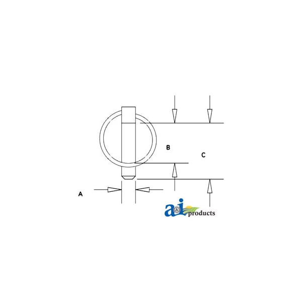 Lynch Pin, w/ Chain .187" (5 pk), Dim A (1): .187", Dim B (2): 1.125", Dim C (3): 1.375"