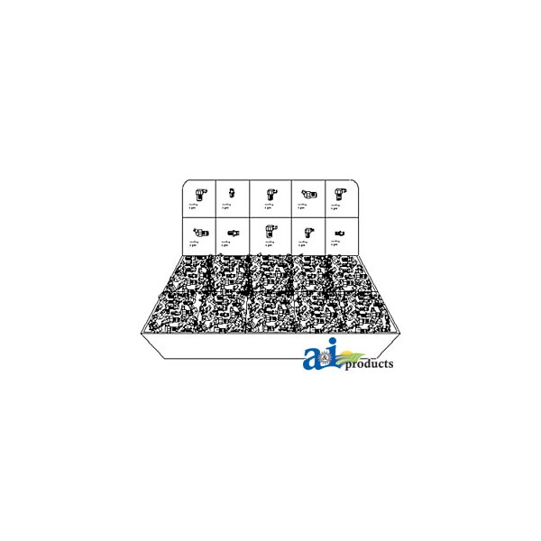 Metric Grease Fitting Counter Display, Notes: Contains: (10) A-GF6M, (10) A-GF690M, (10) A-GF845M, (6) A-GF10M, (6) A-GF1090M, (15) A-GFC1, (10), Notes: A-GFC45M, (10) A-GF8M, (10) A-GF890M, (6) A-GF1045M.