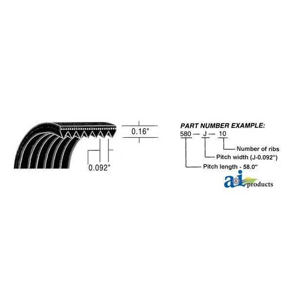 Micro-Rib V-Belt (35.0"), Color: Black, Length: 35", Material: Polyester Cord, Maximum Ribs: 220, Metric Code: 10PJ889, Notes: 10 Rib X 35" J Micro Rib Polyester Cord, Number Of Ribs: 10, Pitch Length: 35.0", Thickness: 0.16", Type: J Micro Rib, Width: 10 Rib