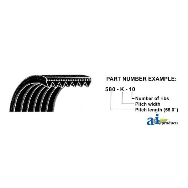 Micro-Rib V-Belt (64"), Color: Black, Length: 64", Material: Polyester Cord, Metric Code: 10PK1626, Notes: 10 Rib X 64" K Micro Rib Polyester Cord, Number Of Ribs: 10, Outside Length: 64.63", Pitch Length: 64", Thickness: 0.18", Type: K Micro Rib, Width: 10 Rib