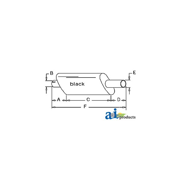Muffler, Dim A (1): A: 4 1/2" INLET LENGTH, Dim B (2): B: 3 3/4" INLET I.D., Dim C (3): C: 23" SHELL LENGTH, Dim D (4): D: 10 1/2" OUTLET LENGTH, Dim E (5): E: 3 1/2" OUTLET O.D., Dim F (6): F: 38" OVERALL LENGTH, Notes: Vertical / Oval Body - 5" X 11" Shell Dimension