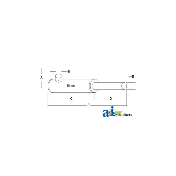 Muffler, Dim A (1): A: 1 3/4" INLET LENGTH, Dim B (2): B: 1 5/16" INLET I.D., Dim C (3): C: 12 1/2" SHELL LENGTH, Dim D (4): D: 2 1/2" OUTLET LENGTH, Dim E (5): E: 1 5/16" OUTLET O.D., Dim F (6): F: 15" OVERALL LENGTH, Notes: Horizontal / Round Body - 3 1/4" Shell Diameter