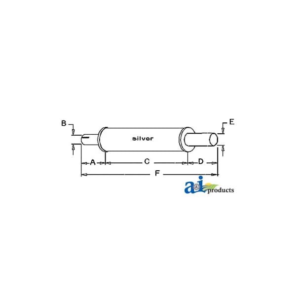 Muffler, Dim A (1): A: 2" INLET LENGTH, Dim B (2): B: 2 3/8" INLET I.D., Dim C (3): C: 14" SHELL LENGTH, Dim D (4): D: 5" OUTLET LENGTH, Dim E (5): E: 2 1/2" OUTLET O.D., Dim F (6): F: 21" OVERALL LENGTH, Notes: Horizontal / Round Body - 4 1/4" Shell Diameter, Replaces: 32289A