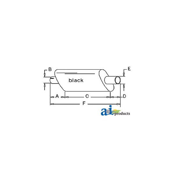 Muffler, Dim A (1): A: 2 1/2" INLET LENGTH, Dim B (2): B: 2 3/4" INLET I.D., Dim C (3): C: 17 1/2" SHELL LENGTH, Dim D (4): D: 4 1/2" OUTLET LENGTH, Dim E (5): E: 2 3/4" OUTLET O.D., Dim F (6): F: 24" OVERALL LENGTH, Notes: Vertical / Oval Body - 6" X 10" Shell Dimension, Replaces: 539950M92, 529390M94