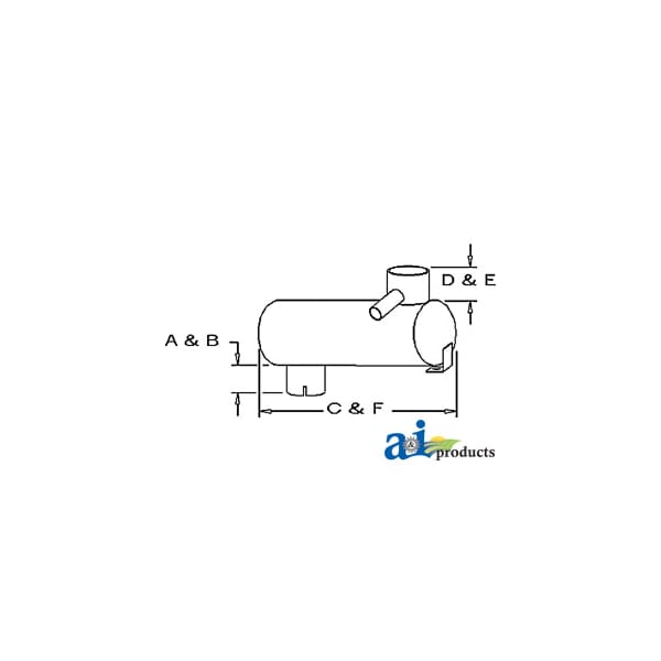 Muffler, Dim A (1): A: 5" INLET LENGTH, Dim B (2): B: 3 3/4" INLET I.D., Dim C (3): C: 28" SHELL LENGTH, Dim D (4): D: 10 1/2" OUTLET LENGTH, Dim E (5): E: 4 1/8" OUTLET O.D., Dim F (6): F: 28" OVERALL LENGTH