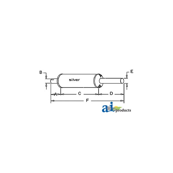 Muffler, Dim A (1): A: 2 1/2" INLET LENGTH, Dim B (2): B: 1 15/16" INLET I.D., Dim C (3): C: 14 1/2" SHELL LENGTH, Dim D (4): D: 10" OUTLET LENGTH, Dim E (5): E: 2" OUTLET O.D., Dim F (6): F: 27" OVERALL LENGTH, Notes: Vertical / Round Body - 5 1/2" Shell Diameter