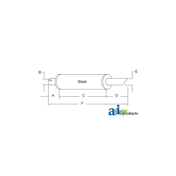 Muffler, Dim A (1): A: 5" INLET LENGTH, Dim B (2): B: 2 3/8" INLET I.D., Dim C (3): C: 15" SHELL LENGTH, Dim D (4): D: 11" OUTLET LENGTH, Dim E (5): E: 2 1/4" OUTLET O.D., Dim F (6): F: 31" OVERALL LENGTH, Notes: Vertical / Round Body - 6" Shell Diameter
