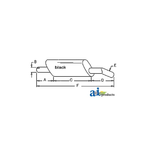 Muffler, Dim A (1): A: 2 1/4" INLET LENGTH, Dim B (2): B: 3" INLET I.D., Dim C (3): C: 18" SHELL LENGTH, Dim D (4): D: BENT PIPE, Dim E (5): E: 2 3/4" OUTLET O.D., Dim F (6): E: 33 1/2 OVERALL LENGTH, Notes: Vertical oval body-shell 4" x 9"