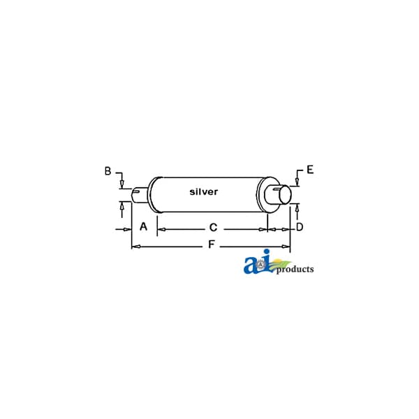Muffler, Dim A (1): A: 3" INLET LENGTH, Dim B (2): B: 1 7/8" INLET I.D., Dim C (3): C: 16 1/2" SHELL LENGTH, Dim D (4): D: 3" OUTLET LENGTH, Dim E (5): E: 2" OUTLET O.D., Dim F (6): F: 22 1/2" OVERALL LENGTH, Notes: Horizontal / Round Body - 3 1/4" Shell Diameter