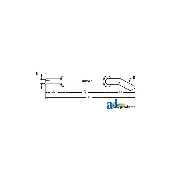 Muffler, Dim A (1): A: 10" INLET LENGTH, Dim B (2): B: 1 3/4" INLET I.D., Dim C (3): C: 17" SHELL LENGTH, Dim D (4): D: 10" OUTLET LENGTH, Dim E (5): E: 1 1/2" OUTLET O.D., Dim F (6): F: 37" OVERALL LENGTH, Notes: Vertical / Round Body - 3 1/4" Shell Diameter