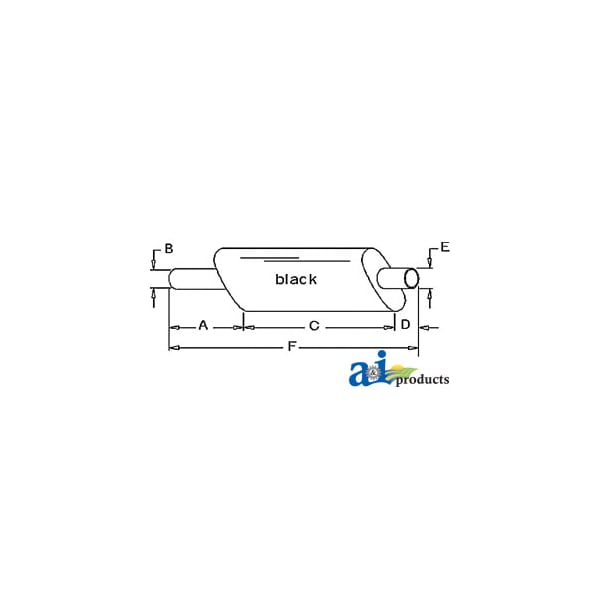MUFFLER, Dim A (1): A: 14" INLET LENGTH, Dim B (2): B: 2 15/16" INLET I.D., Dim C (3): C: 23" SHELL LENGTH, Dim D (4): D: 5 1/4" OUTLET LENGTH, Dim E (5): E: 3" OUTLET O.D., Dim F (6): F: 42" OVERALL LENGTH, Notes: Vertical / Oval Body - 5" x 11" Shell Dimension
