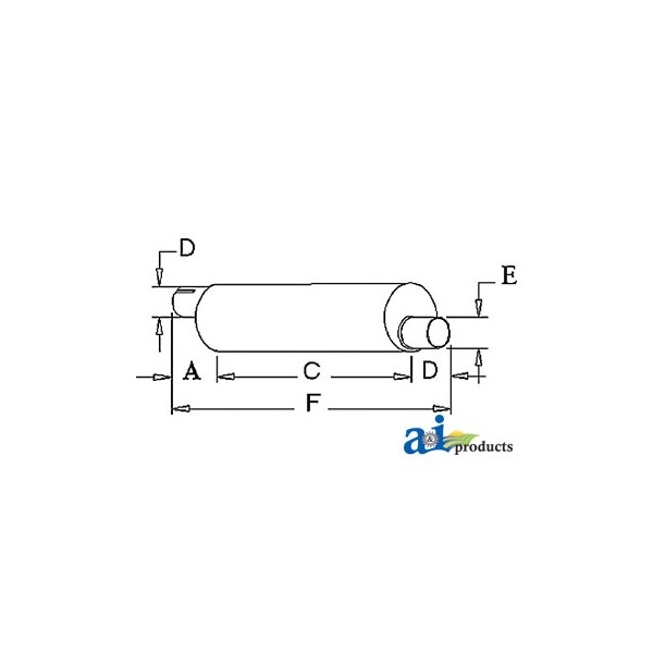Muffler, Dim A (1): A: 1 1/2" INLET LENGTH, Dim B (2): B: 3" INLET I.D., Dim C (3): C: 27 1/2" SHELL LENGTH, Dim D (4): D: 3" OUTLET LENGTH, Dim E (5): E: 3" OUTLET I.D., Dim F (6): F: 32" OVERALL LENGTH, Notes: Vertical / Round Body - 9" Shell Diameter