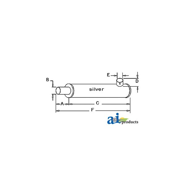 MUFFLER, Dim A (1): A: 2 1/2" INLET LENGTH, Dim B (2): B: 1 15/16" INLET I.D., Dim C (3): C: 15 1/2" SHELL LENGTH, Dim D (4): D: 2" OUTLET LENGTH, Dim E (5): E: 1 3/8" OUTLET O.D., Dim F (6): F: 18 1/2" OVERALL LENGTH, Notes: Vertical or Horizontal / Round Body - 3 1/4" Shell Diameter