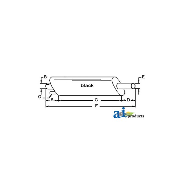 Muffler, Dim A (1): A: 5" INLET LENGTH, Dim B (2): B: 4" INLET I.D., Dim C (3): C: 18" SHELL LENGTH, Dim D (4): D: 26" OUTLET LENGTH, Dim E (5): E: 4" OUTLET O.D., Dim F (6): F: 49" OVERALL LENGTH, Notes: Vertical / Oval Body - 6" X 10" Shell Dimension (Muffler Has Straight Aspirator Tube - Ref. G)