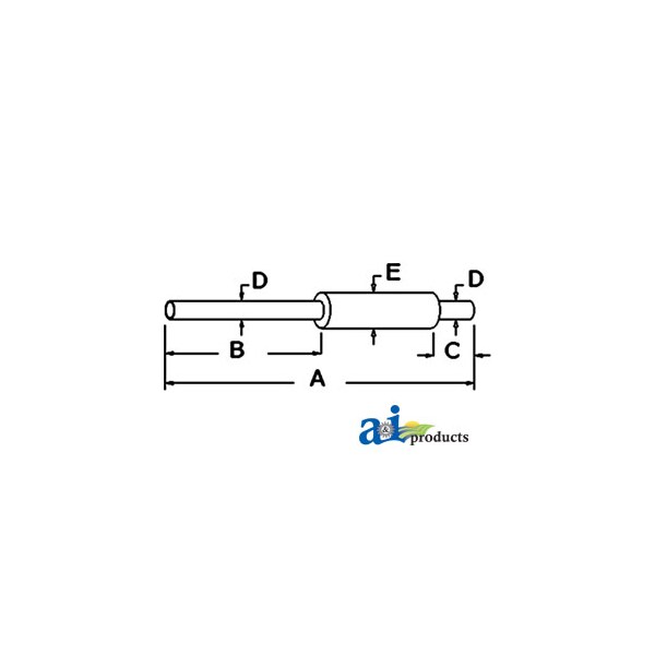 Muffler, Dim A (1): A: 6 1/2" INLET LENGTH, Dim B (2): B: 2 1/4" INLET O.D., Dim C (3): C: 4 3/5" SHELL O.D., Dim D (4): D: 27 1/2" OUTLET LENGTH, Dim E (5): E: 2 1/4" OUTLET O.D., Dim F (6): F: 52 1/2" OVERALL LENGTH