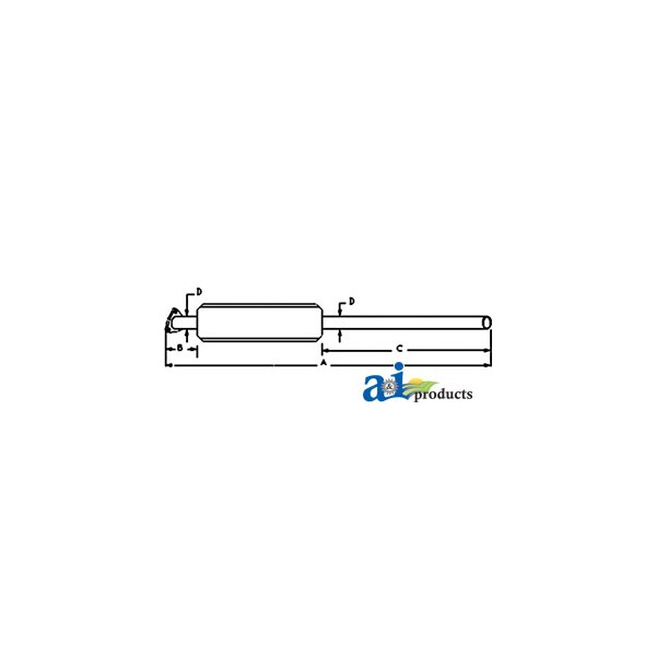 MUFFLER, Dim A (1): A: 59 3/16" OVERALL LENGTH, Dim B (2): B: 4 1/8" INLET LENGTH, Dim C (3): C: 32 1/4" OUTLET LENGTH, Dim D (4): D: 2 3/8" INLET/ OUTLET O.D., Notes: Muffler Has Extended Outlet Pipe Compared To Original, Replaces: LP3137, 531970011423