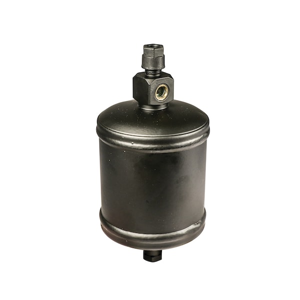 R12/ R134a Filter Drier, Dim A (1): Inlet- 3/8" FO X Outlet- 3/8" MIO, Dim B (2): Diameter 4" X 7.9" Length, Dim C (3): Sight Glass: Side (2), Notes: In Press.Line by Cond., Replaces: 700705099, 87105840, Web Notes: R12/R134A Filter Drier. 4 x 7.9" SG, 3/8" x 3/8" MO.