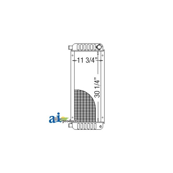 Radiator, Dim A (1): Core Size: 11.750" Wide, Dim C (3): 5 Rows of Tubes, Dim D (4): 7 Fins per Inch, Web Notes: Each radiator has a stamped brass tank, undergoes a rigorous quality inspection, and is 100% leak, Web Notes: is 11.75" wide. This radiator fits the Bobcat Skid Steer Loader 843 and 843B., Web Notes: Our new radiator is designed and built to precise dimensional specifications to ensure an exact fit., Web Notes: tested. This radiator has 7 fins per inch and 5 rows of tubes. It is 30.25" tall and the core size