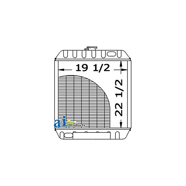Radiator, Dim A (1): Core Size: 19.500" Wide, Dim B (2): 22.500" High, Dim C (3): 5 Rows of Tubes, Dim D (4): 8 Fins per Inch, Web Notes: Each radiator has a stamped brass tank, undergoes a rigorous quality inspection, and is 100% leak, Web Notes: engine) and LX985 (with diesel engine)., Web Notes: is 19.5" wide. This radiator fits the Ford / New Holland Skid Steer Loader LS190 (with diesel, Web Notes: Our new radiator is designed and built to precise dimensional specifications to ensure an exact fit., Web Notes: tested. This radiator has 8 fins per inch and 5 rows of tubes. It is 22.5" tall and the core size