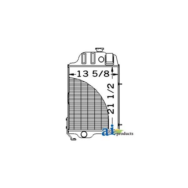 Radiator, Dim A (1): Core Size: 13.625" Wide, Dim B (2): 21.500" High, Dim C (3): 4 Rows of Tubes, Dim D (4): 8 Fins per Inch, Replaces: AT32589, Web Notes: Each radiator has a stamped brass tank, undergoes a rigorous quality inspection, and is 100% leak, Web Notes: is 13.625" wide. This radiator fits the John Deere 410. (NOTE: replaces AT32589), Web Notes: Our new radiator is designed and built to precise dimensional specifications to ensure an exact fit., Web Notes: tested. This radiator has 8 fins per inch and 4 rows of tubes. It is 21.5" tall and the core size