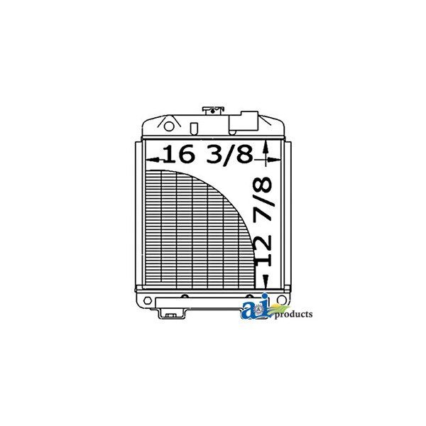 Radiator, Dim A (1): Core Size: 16.375" Wide, Dim B (2): 12.875" High, Dim C (3): 2 Rows of Tubes, Dim D (4): Serpentine Fin Const., Web Notes: Each radiator has a stamped brass tank, undergoes a rigorous quality inspection, and is 100% leak, Web Notes: and the core size is 16.375" wide. This radiator fits multiple Ford / New Holland models., Web Notes: Our new radiator is designed and built to precise dimensional specifications to ensure an exact fit., Web Notes: tested. This radiator has a serpentine fin construction and 2 rows of tubes. It is 12.875" tall