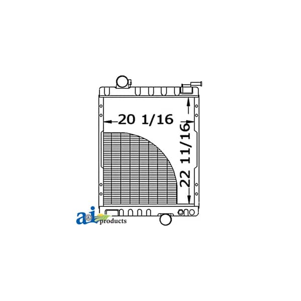 Radiator, Dim A (1): Core Size: 20.062" Wide, Dim B (2): 22.687" High, Dim C (3): 4 Rows of Tubes, Dim D (4): 8 Fins per Inch, Web Notes: Each radiator has a stamped brass tank, undergoes a rigorous quality inspection, and is 100% leak, Web Notes: cab)., Web Notes: Our new radiator is designed and built to precise dimensional specifications to ensure an exact fit., Web Notes: size is 20.062" wide. This radiator fits the John Deere Tractor 7200 (without cab) or 7210 (without, Web Notes: tested. This radiator has 8 fins per inch and 4 rows of tubes. It is 22.687" tall and the core