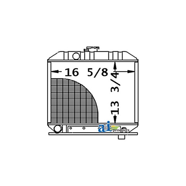 Radiator, Dim A (1): Core Size: 16.50" Wide, Dim B (2): 13.75" High, Dim C (3): 3 Rows of Tubes, Dim D (4): Serpentine Fin Const., Web Notes: Each radiator has a stamped brass tank, undergoes a rigorous quality inspection, and is 100% leak, Web Notes: the core size is 16.5" wide. This radiator fits multiple Kubota Compact Tractor models. (NOTE:, Web Notes: Our new radiator is designed and built to precise dimensional specifications to ensure an exact fit., Web Notes: replaces 1530172060), Web Notes: tested. This radiator has a serpentine fin construction and 3 rows of tubes. It is 13.75" tall and