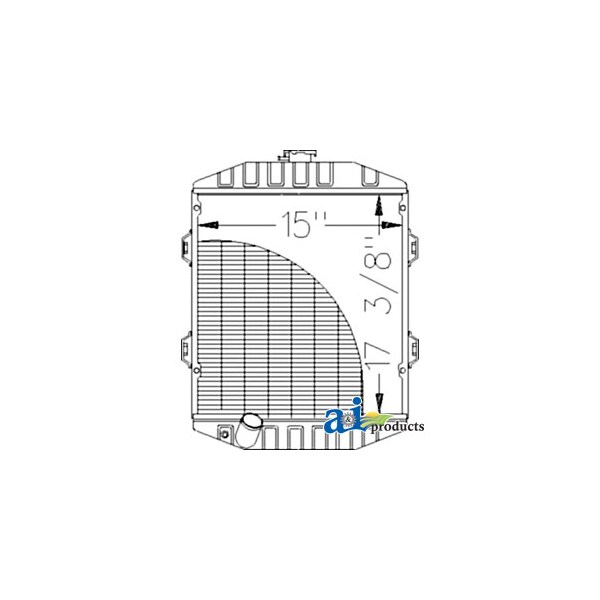 Radiator, Dim A (1): Core Size: 15.00" Wide, Dim B (2): 17.375" High, Dim C (3): 3 Rows of Tubes, Dim D (4): Serpentine Fin Const., Web Notes: Each radiator has a stamped brass tank, undergoes a rigorous quality inspection, and is 100% leak, Web Notes: and the core size is 15" wide. This radiator fits the John Deere Compact Tractor 1050. (NOTE:, Web Notes: Our new radiator is designed and built to precise dimensional specifications to ensure an exact fit., Web Notes: replaces CH13963), Web Notes: tested. This radiator has a serpentine fin construction with 3 rows of tubes. It is 17.375" tall