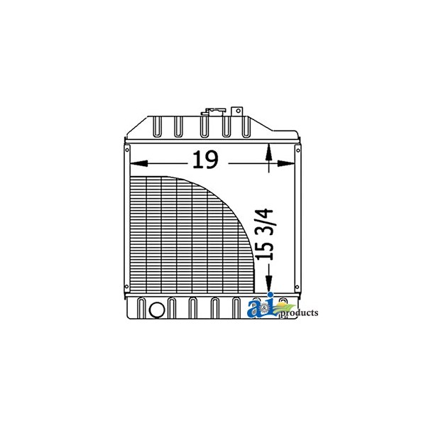 Radiator, Dim A (1): Core Size: 19.00" Wide, Dim B (2): 15.375" High, Dim C (3): 3 Rows of Tubes, Dim D (4): Serpentine Fin Const., Notes: (RE71863) Not Available From A&I Products., Notes: Does Not Include Radiator Cap Or Drain Petcock. Uses 1/4" NPT Petcock (AM103347) & Radiator Cap, Web Notes: Each radiator has a stamped brass tank, undergoes a rigorous quality inspection, and is 100% leak, Web Notes: and the core size is 19" wide. This radiator fits multiple John Deere Tractor models., Web Notes: Our new radiator is designed and built to precise dimensional specifications to ensure an exact fit., Web Notes: tested. This radiator has a serpentine fin construction and 3 rows of tubes. It is 15.375" tall