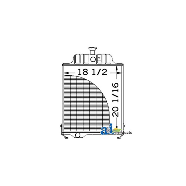 Radiator, Dim A (1): Core Size: 18.500" Wide, Dim B (2): 20.062" High, Dim C (3): 3 Rows of Tubes, Dim D (4): 8 Fins per Inch, Web Notes: Each radiator has a stamped brass tank, undergoes a rigorous quality inspection, and is 100% leak, Web Notes: Our new radiator is designed and built to precise dimensional specifications to ensure an exact fit., Web Notes: size is 18.5" wide. This radiator fits the John Deere 401D., Web Notes: tested. This radiator has 8 fins per inch and 3 rows of tubes. It is 20.062" tall and the core