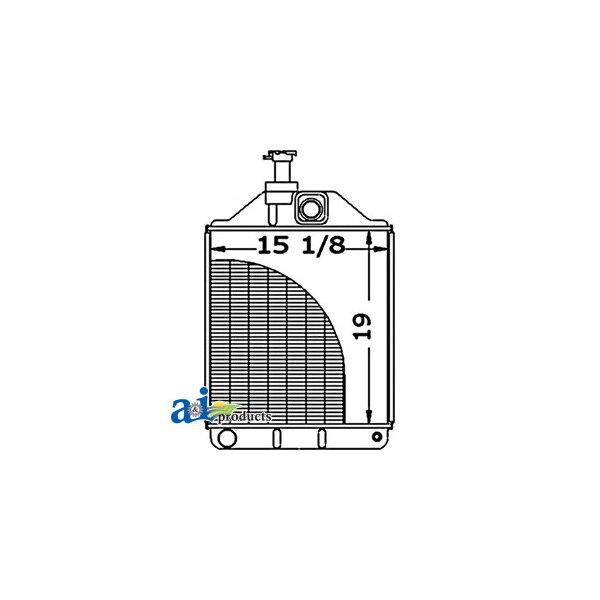 Radiator, Dim A (1): Core Size: 15.125" Wide, Dim B (2): 19.000" High, Dim C (3): 3 Rows of Tubes, Dim D (4): 8 Fins per Inch, Web Notes: Each radiator has a stamped brass tank, undergoes a rigorous quality inspection, and is 100% leak, Web Notes: 15.125" wide. This radiator fits the Massey Ferguson Tractor 575 (UK and French models)., Web Notes: Our new radiator is designed and built to precise dimensional specifications to ensure an exact fit., Web Notes: tested. This radiator has 8 fins per inch and 3 rows of tubes. It is 19" tall and the core size is