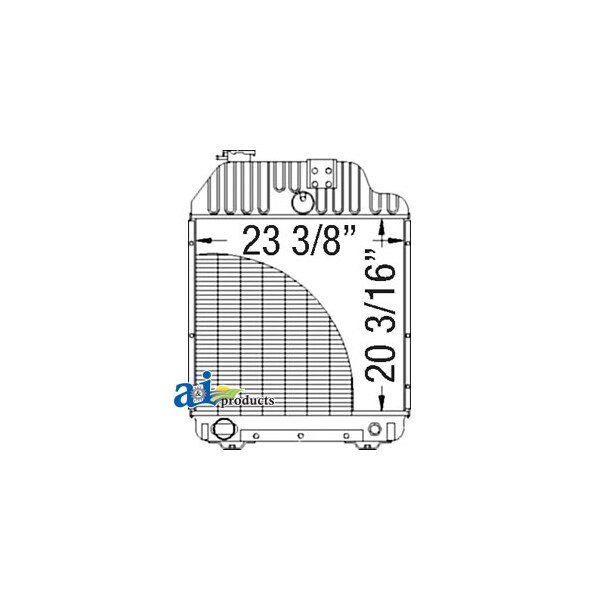 Radiator, Dim A (1): Core Size: 23.375" Wide, Dim B (2): 20.187" High, Dim C (3): 4 Rows of Tubes, Dim D (4): 8 Fins per Inch, Web Notes: Each radiator has a stamped brass tank, undergoes a rigorous quality inspection, and is 100% leak, Web Notes: Our new radiator is designed and built to precise dimensional specifications to ensure an exact fit., Web Notes: size is 23.375" wide. This radiator fits multiple Massey Ferguson Tractor models., Web Notes: tested. This radiator has 8 fins per inch and 4 rows of tubes. It is 20.187" tall and the core