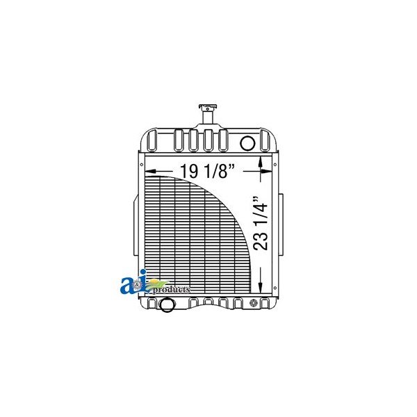 Radiator, Dim A (1): Core Size: 19.125" Wide, Dim B (2): 23.250" High, Dim C (3): 5 Rows of Tubes, Dim D (4): 7 Fins per Inch, Web Notes: Each radiator has a stamped brass tank, undergoes a rigorous quality inspection, and is 100% leak, Web Notes: is 19.125" wide. This radiator fits multiple Case-IH Tractor models. (NOTE: replaces HH386860), Web Notes: Our new radiator is designed and built to precise dimensional specifications to ensure an exact fit., Web Notes: tested. This radiator has 7 fins per inch and 5 rows of tubes. It is 23.25" tall and the core size