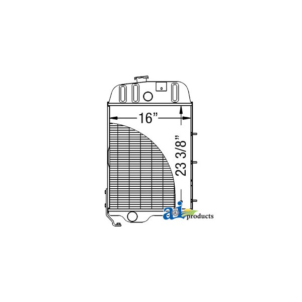 Radiator, Dim A (1): Core Size: 16.00" Wide, Dim B (2): 23.375" High, Dim C (3): 4 Rows of Tubes, Dim D (4): 10 Fins per Inch, Web Notes: Each radiator has a stamped brass tank, undergoes a rigorous quality inspection, and is 100% leak, Web Notes: Our new radiator is designed and built to precise dimensional specifications to ensure an exact fit., Web Notes: size is 16" wide. This radiator fits multiple John Deere models., Web Notes: tested. This radiator has 10 fins per inch and 4 rows of tubes. It is 23.375" tall and the core