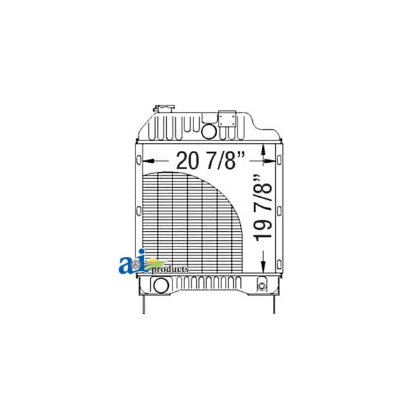 Radiator, Dim A (1): Core Size: 20.875" Wide, Dim B (2): 19.875" High, Dim C (3): 4 Rows of Tubes, Dim D (4): 8 Fins per Inch, Web Notes: Each radiator has a stamped brass tank, undergoes a rigorous quality inspection, and is 100% leak, Web Notes: Our new radiator is designed and built to precise dimensional specifications to ensure an exact fit., Web Notes: size is 20.875" wide. This radiator fits multiple Massey Ferguson Tractor models., Web Notes: tested. This radiator has 8 fins per inch and 4 rows of tubes. It is 19.875" tall and the core