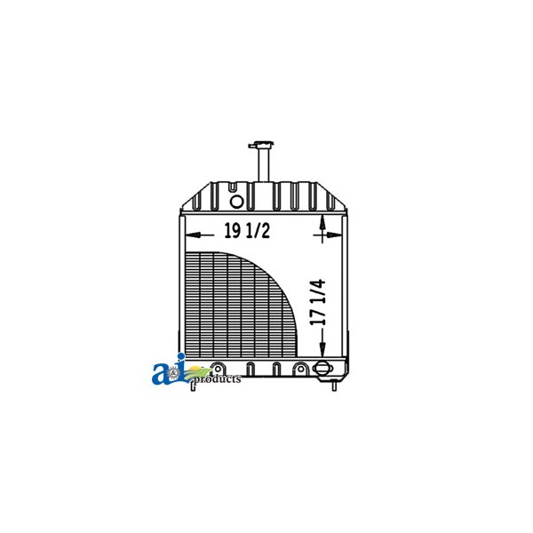 Radiator, Dim A (1): Core Size: 19.500" Wide, Dim B (2): 17.250" High, Dim C (3): 4 Rows of Tubes, Dim D (4): 10 Fins per Inch, Dim E (5): W/ OIL COOLER, Web Notes: Each radiator has a stamped brass tank, undergoes a rigorous quality inspection, and is 100% leak, Web Notes: and the core size is 19.5" wide. This radiator fits multiple Ford / New Holland models. (NOTE:, Web Notes: Our new radiator is designed and built to precise dimensional specifications to ensure an exact fit., Web Notes: replaces 82847506), Web Notes: tested. This radiator with oil cooler has 10 fins per inch and 4 rows of tubes. It is 17.25" tall