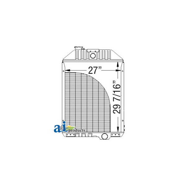 Radiator, Dim A (1): Core Size: 27.00" Wide, Dim B (2): 29.4375" High, Dim C (3): 5 Rows of Tubes, Dim D (4): 8 Fins per Inch, Web Notes: Each radiator has a stamped brass tank, undergoes a rigorous quality inspection, and is 100% leak, Web Notes: Our new radiator is designed and built to precise dimensional specifications to ensure an exact fit., Web Notes: size is 27" wide. This radiator fits multiple John Deere Cotton Picker models., Web Notes: tested. The radiator has 8 fins per inch and 5 rows of tubes. It is 29.4375" tall and the core