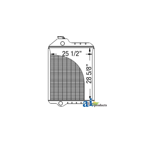 Radiator, Dim A (1): Core Size: 25.50" Wide, Dim B (2): 28.625" High, Dim C (3): 5 Rows of Tubes, Dim D (4): 8 Fins per Inch, Web Notes: Each radiator has a stamped brass tank, undergoes a rigorous quality inspection, and is 100% leak, Web Notes: Our new radiator is designed and built to precise dimensional specifications to ensure an exact fit., Web Notes: size is 25.5" wide. This radiator fits multiple John Deere Tractor models., Web Notes: tested. This radiator has 8 fins per inch and 5 rows of tubes. It is 28.625" tall and the core