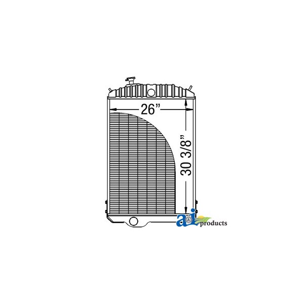 Radiator, Dim A (1): Core Size: 26.0" Wide, Dim B (2): 30.375" High, Dim C (3): 5 Rows of Tubes, Dim D (4): 7 Fins per Inch, Replaces: AR79456, AR90741, Web Notes: Each radiator has a stamped brass tank, undergoes a rigorous quality inspection, and is 100% leak, Web Notes: AR90741), Web Notes: Our new radiator is designed and built to precise dimensional specifications to ensure an exact fit., Web Notes: size is 26" wide. This radiator fits the John Deere Tractor 4640. (NOTE: replaces AR79456 or, Web Notes: tested. This radiator has 7 fins per inch and 5 rows of tubes. It is 30.375" tall and the core