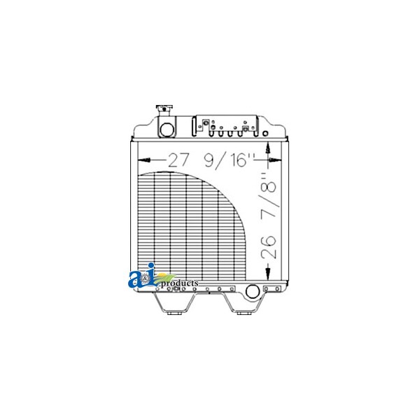 Radiator, Dim A (1): Core Size: 27.50" Wide, Dim B (2): 26.875" High, Dim C (3): 3 Rows of Tubes, Dim D (4): 10 Fins per Inch, Replaces: 86012174, 9825244, 89825244, Web Notes: Each radiator has a stamped brass tank, undergoes a rigorous quality inspection, and is 100% leak, Web Notes: 86012174, 89825244, 9825244), Web Notes: Our new radiator is designed and built to precise dimensional specifications to ensure an exact fit., Web Notes: size is 27.5" wide. This radiator fits multiple Ford / New Holland Tractor models. (NOTE: replaces, Web Notes: tested. This radiator has 10 fins per inch and 3 rows of tubes. It is 26.875" tall and the core