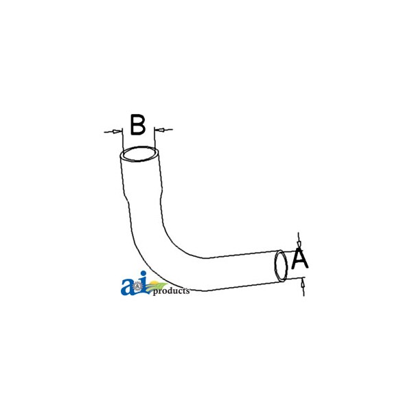 Radiator Hose, Bottom, Dim A (1): A - 1.250" ID, Dim B (2): B - 1.500" ID, Web Notes: New lower radiator hose with an inside diameter of 1.25" on the smaller side and 1.5" on the larger, Web Notes: side. This radiator hose fits the Massey Ferguson Tractor 360. (NOTE: replaces 1694711V3)
