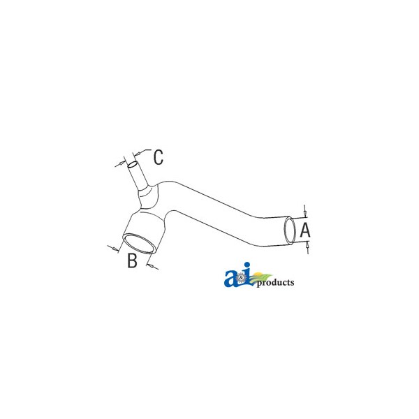 Radiator Hose, Bottom, Dim A (1): A - 1.562" ID, Dim B (2): B - 2.250" ID, Dim C (3): C - .470" ID, Web Notes: cab)., Web Notes: New lower radiator hose with an inside diameter of 0.47" on the smallest side, 1.562" on the small, Web Notes: side, and 2.25" on the larger side. This radiator hose fits the Massey Ferguson Tractor 399 (with