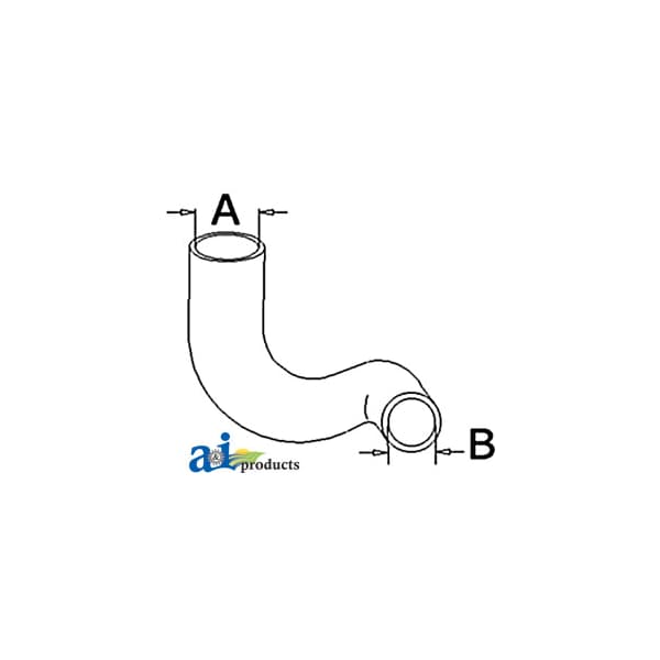 Radiator Hose, Lower, Dim A (1): A - 2.187", Dim B (2): B - 1.750", Web Notes: 70248233V), Web Notes: larger side. This radiator hose fits multiple Allis-Chalmers Tractor models. (NOTE: replaces, Web Notes: New lower radiator hose with an inside diameter of 1.75" on the smaller side and 2.187" on the
